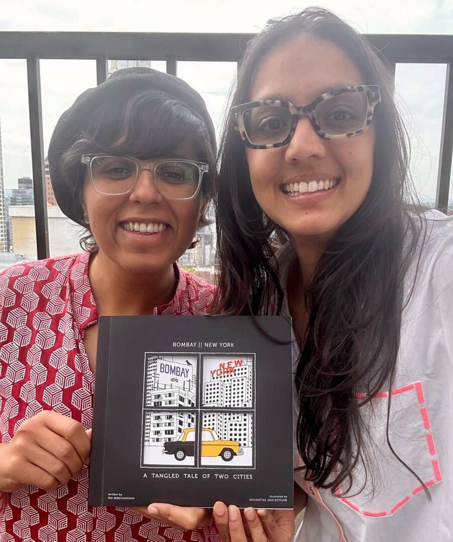 Ria Mirchandani (writer) and Shivantika Jain Kothari (illustrator) grew up two minutes apart in Bombay (ten with traffic) and later lived eight subway stops apart in New York. They often found themselves bemoaning the pull of one city while living in the other. This book is their journey in embracing, even celebrating, the state of the in-between.